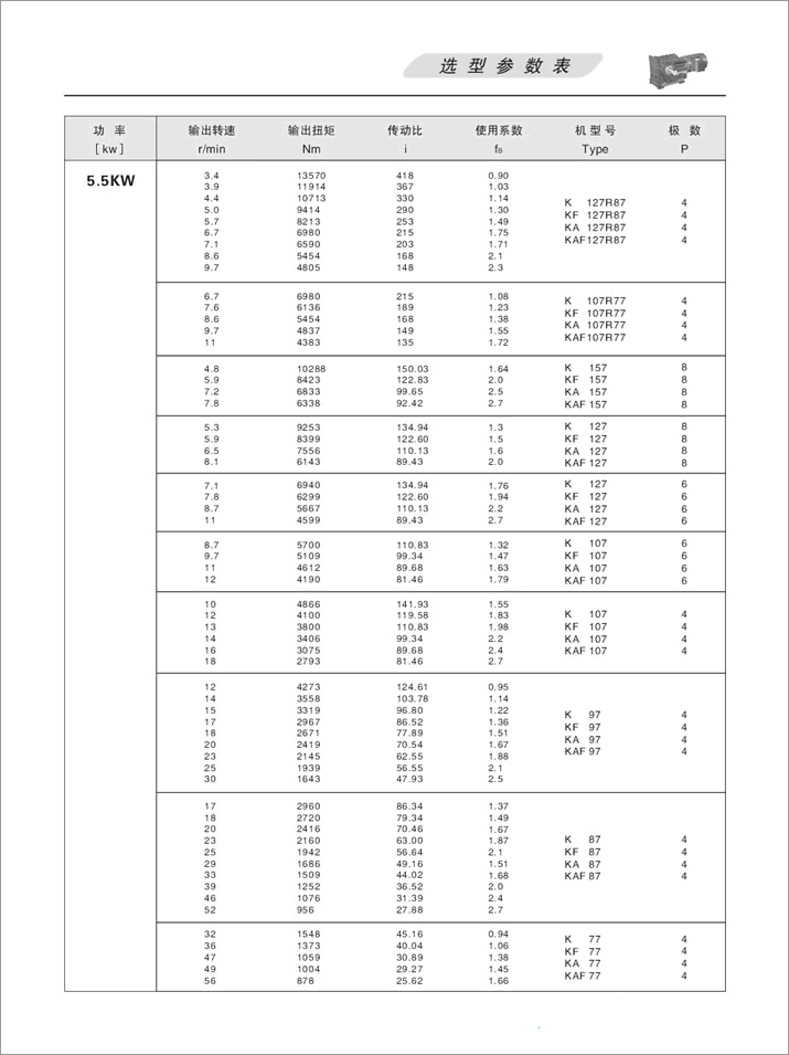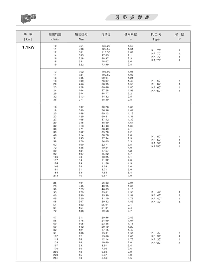 (1)型號有:K、KA、KAB、KF、KAF、KAT、KS型7種。