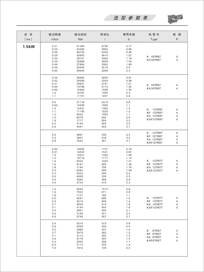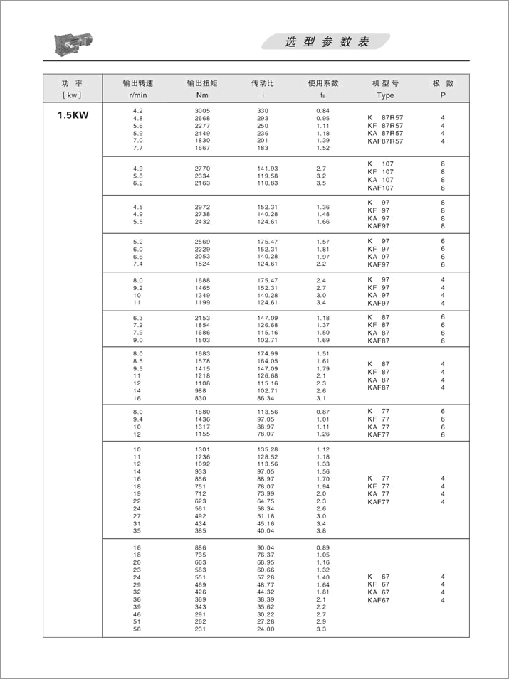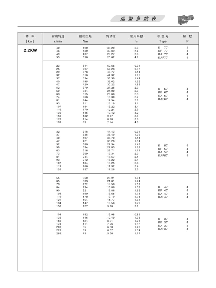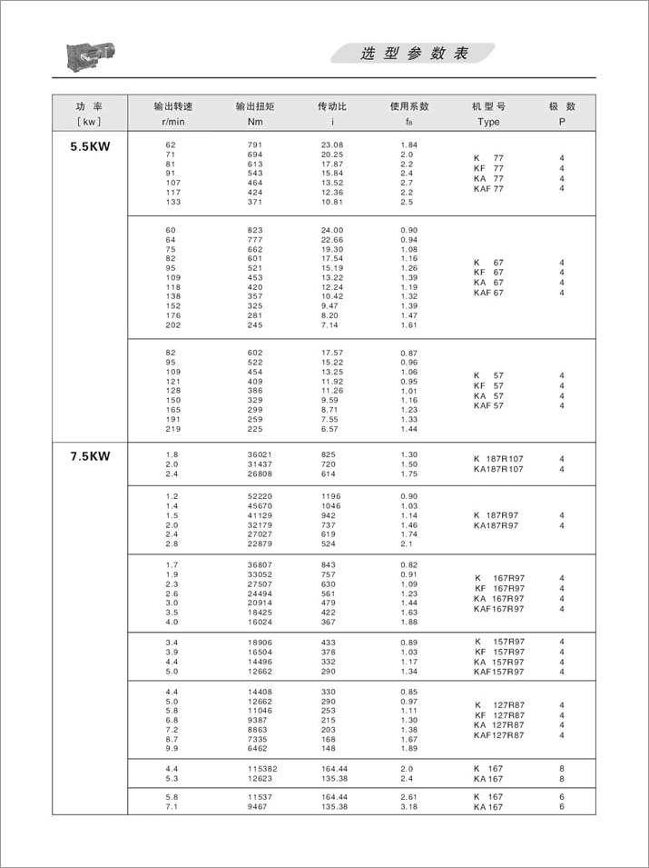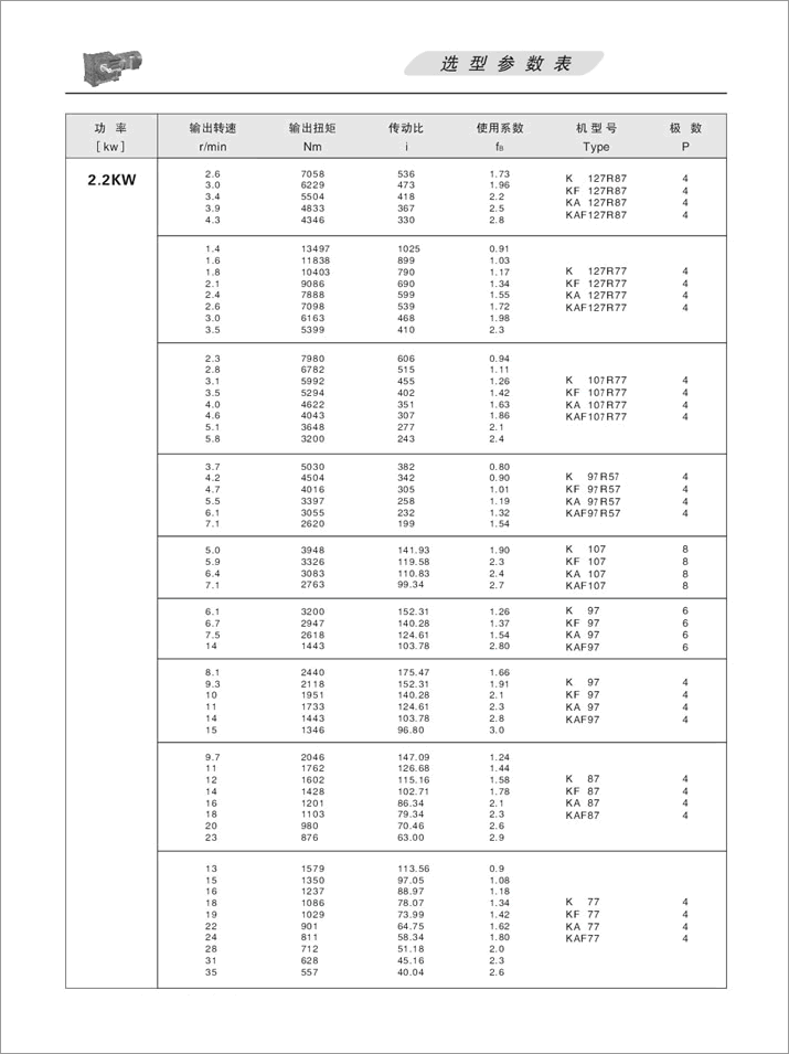 K型螺旋錐齒輪減速器具有體積小、傳遞轉矩大,效率高,工作平穩(wěn),壽命長,所配功率范圍廣,輸出轉速多,安裝形式多等特點,有7種型式,9種規(guī)格。