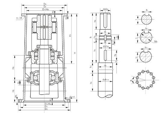 注:圖示所注“h”僅與本樣本BLD、LC-Ⅱ、DC-Ⅱ系列減速機(jī)相配,如選用其他型號或其他廠家減速機(jī),“h”需另行計(jì)算。增高后的LSJ型機(jī)架其下部空間高度可容納205、206或207型雙端面機(jī)械密封。