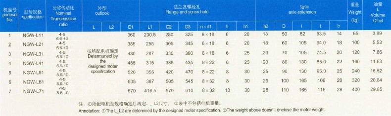 產(chǎn)品由NGW—L型單級L11-L71,兩級L42—L122兩種系列組成,適用于;臺金起重運(yùn)輸輕化及通用機(jī)械設(shè)備,適用條件如下: