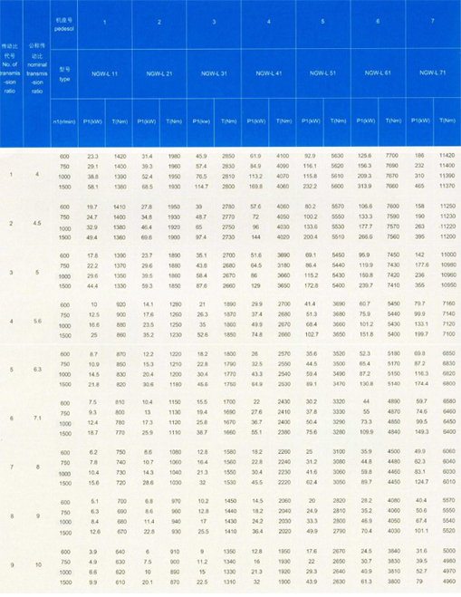 1.選用NGW型單級行星減速器時,應(yīng)根據(jù)使用條件: