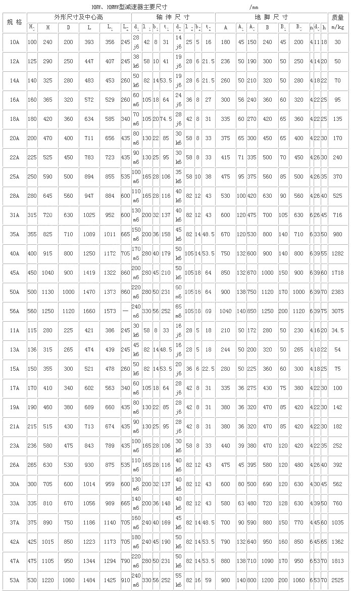 H型星輪減速器(JB/T 8712—1998)代替原混合少齒差星輪減速器(ZBJ 19006—1988)屬少齒差漸開線行星齒輪傳動,具有體積小,承載能力高,傳動比寬、密,效率高,壽命長,傳動平穩(wěn),允許高速輸入等特點。采用單元化結(jié)構,以行星齒輪、內(nèi)齒輪、滾動星輪、偏心套和行星架組合的主要單元,代號H;用擴大傳動比的附加單元代號N;用來改變輸入方向的附加單元代號Z。同一種機座號可采用4種承載能力單元結(jié)構,因而在產(chǎn)品型號后面附注A、B、C、D4個承載能力代號,即輕型、中型、重型、超重型。適用于冶金、礦山、電力 、起重、運輸、橡膠、水泥、造紙、制糖、鍋爐、建筑等領域,為通用型減速器。