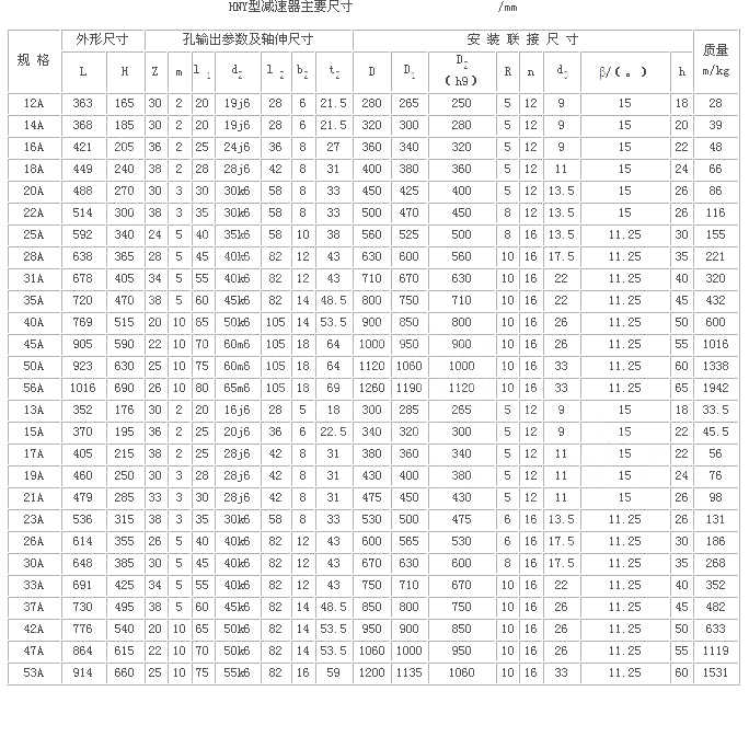 H型星輪減速器(JB/T 8712—1998)代替原混合少齒差星輪減速器(ZBJ 19006—1988)屬少齒差漸開線行星齒輪傳動,具有體積小,承載能力高,傳動比寬、密,效率高,壽命長,傳動平穩(wěn),允許高速輸入等特點。采用單元化結(jié)構(gòu),以行星齒輪、內(nèi)齒輪、滾動星輪、偏心套和行星架組合的主要單元,代號H;用擴大傳動比的附加單元代號N;用來改變輸入方向的附加單元代號Z。同一種機座號可采用4種承載能力單元結(jié)構(gòu),因而在產(chǎn)品型號后面附注A、B、C、D4個承載能力代號,即輕型、中型、重型、超重型。適用于冶金、礦山、電力 、起重、運輸、橡膠、水泥、造紙、制糖、鍋爐、建筑等領(lǐng)域,為通用型減速器。