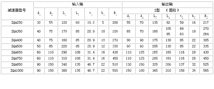 ZQA型減速器是在ZQ型減速器的基礎(chǔ)上改型設(shè)計(jì)的。為了提高齒輪的承載能力,又便于替代ZQ型,即安裝尺寸和外形尺寸、輸入和輸出軸伸不變的情況下,只改變齒輪的材質(zhì)和熱處理方式采用中硬齒面。并將ZQ型減速器的一級(jí)速比23.34改成25.02。