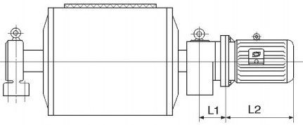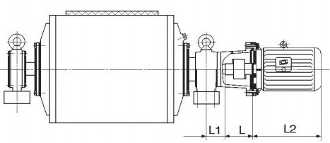 注:圖中Ll值為輸入支座中心到輸入軸軸伸肩胛的尺寸,如為WⅡ式直聯(lián)接軸型外置式電動(dòng)滾筒時(shí)則為輸入支座中心到電機(jī)法蘭端面的參考尺寸。